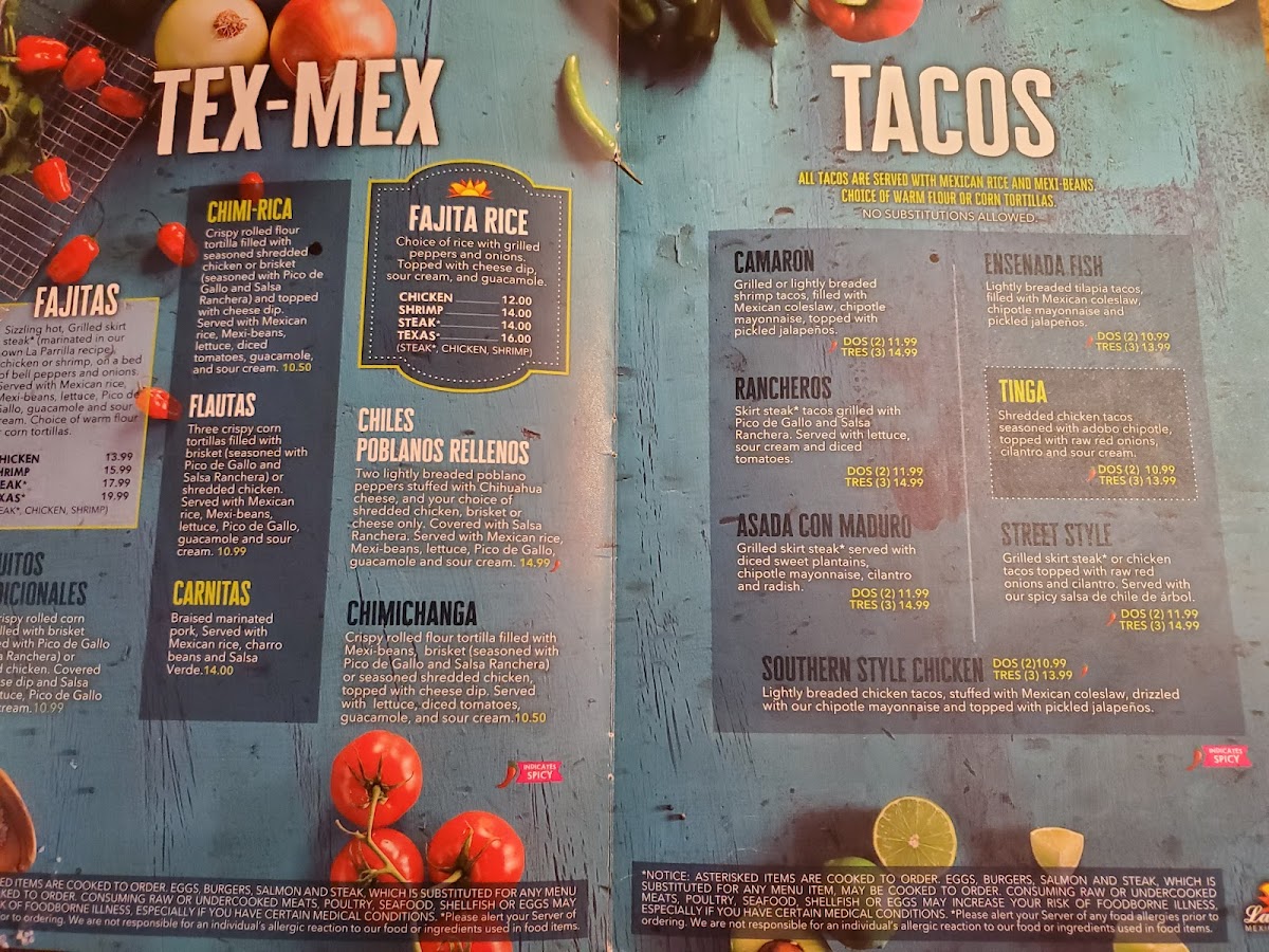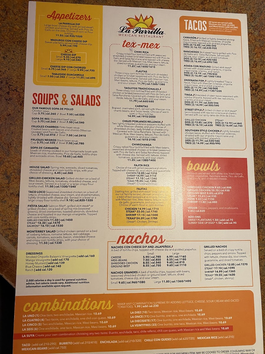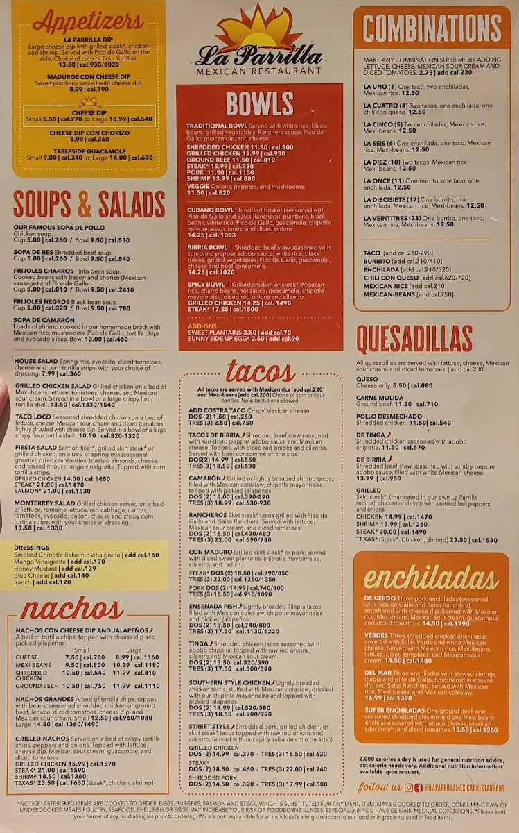 When you step into La Parrilla Mexican Restaurant - Dothan, Al Menu, you’re greeted with the warm and inviting flavors of authentic Mexican cuisine. Whether you're craving a hearty burrito, sizzling fajitas, or classic enchiladas, there’s something on the menu to satisfy every taste. The vibrant, bold spices in every dish make each bite a celebration of Mexican traditions. From zesty tacos to rich, flavorful quesadillas, this menu is packed with fresh ingredients and time-honored recipes. The cozy ambiance of the restaurant perfectly complements the hearty meals, ensuring that every dining experience feels like a special occasion. Indulge in the delicious variety and find your new favorite dish today!